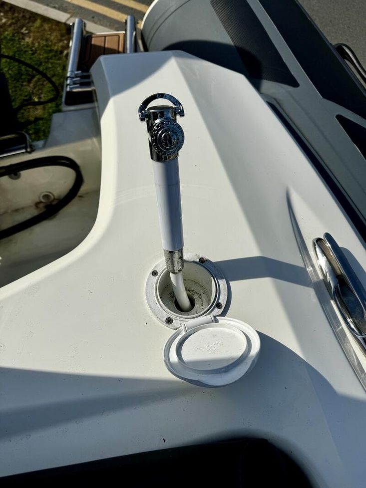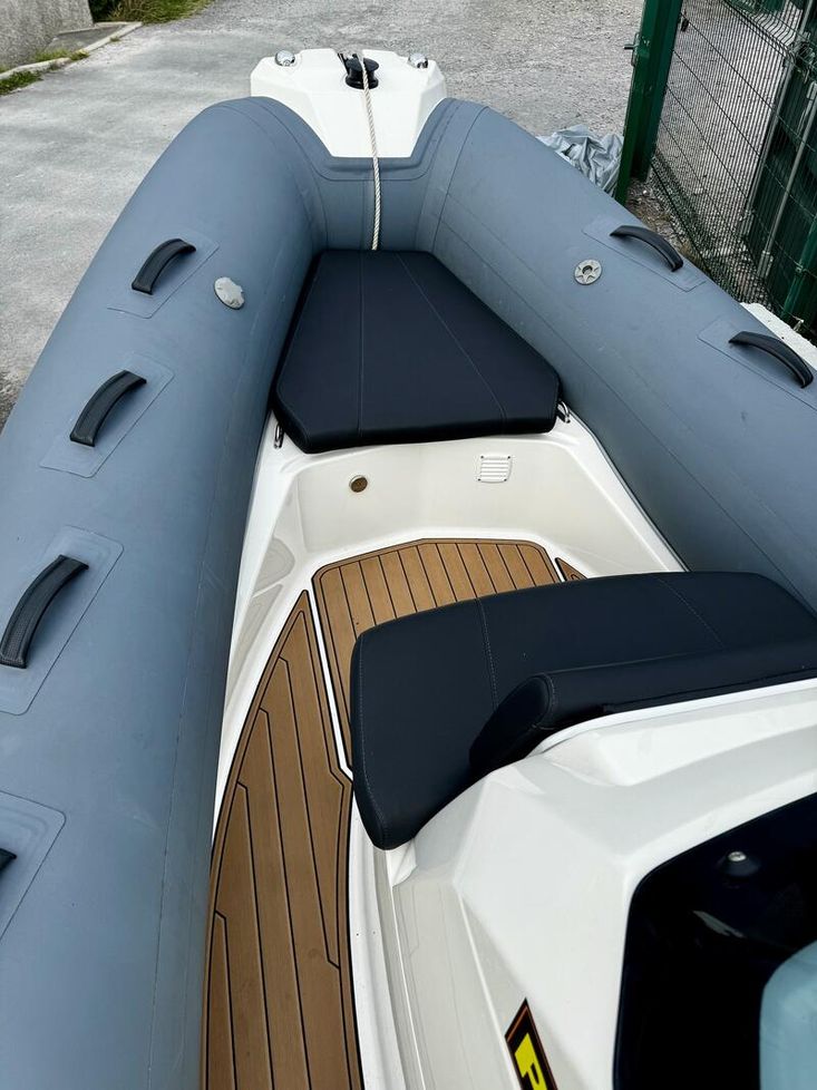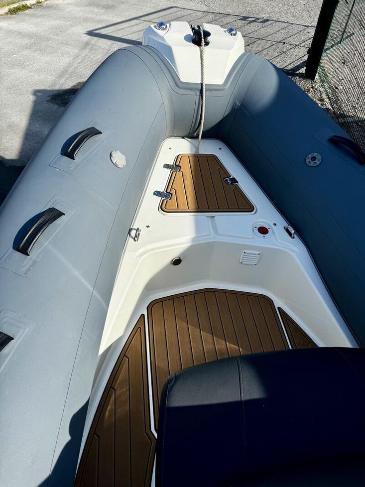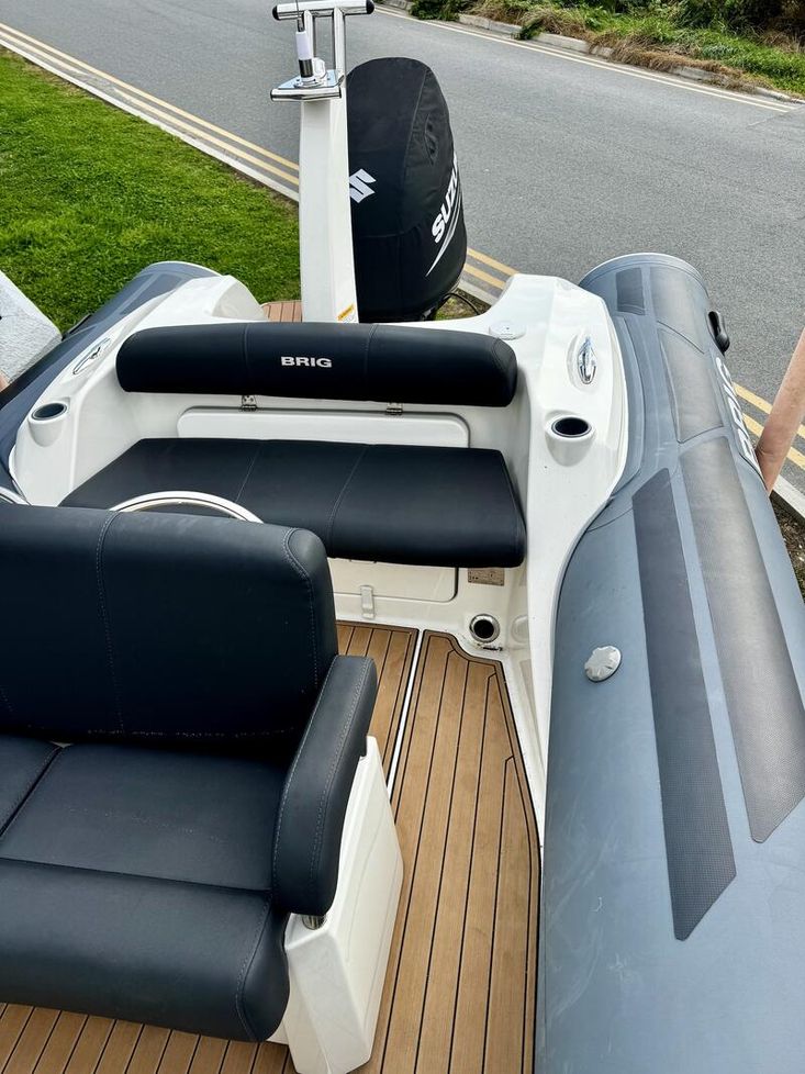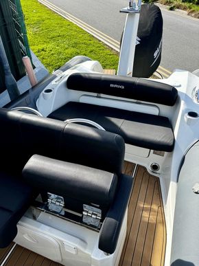 Comfort & Convenience This Eagle 6 is designed with family adventures in mind. The spacious layout includes bow infill and cushions for added relaxation, as well as a transom shower and swim platform for easy water access. It’s equipped with a full set of Brig covers, including console and aft seat covers, and a Brig overall boat cover for storage. The anchor and chain fit neatly into the bow locker, alongside white fenders and ropes for easy mooring.