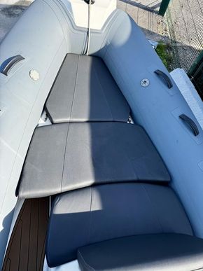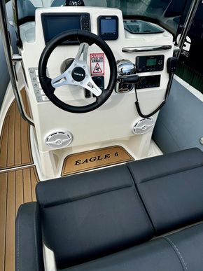 Family-Ready Comfortably seating 8 passengers, the Eagle 6’s ample under-seat storage and durable ORCA Hypalon tubes ensure a stable, dry ride in various conditions. The telescopic boarding ladder and swim platform make water access easy, while the full bow sunpad adds comfort for sunbathing or relaxation.