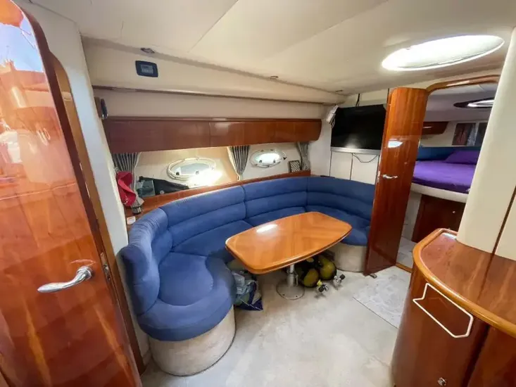 - Saloon fitted with Port side with large sofa area with table mounted in front