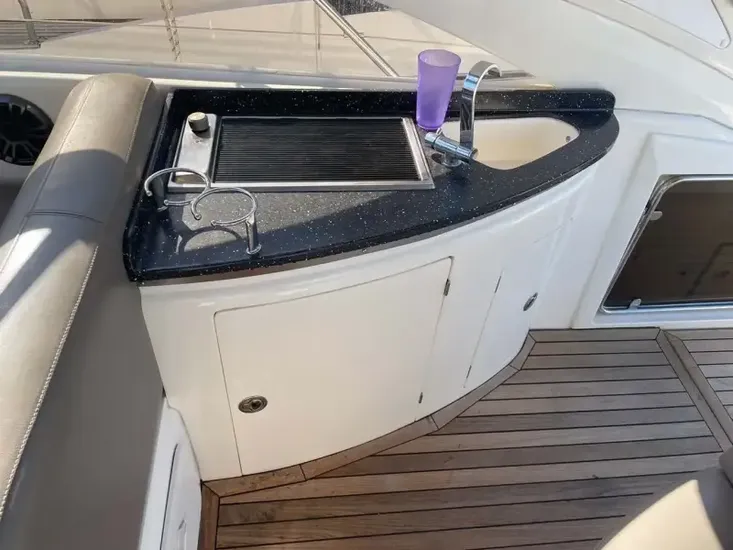 - Starboard side wet bar fitted with griddle, fridge, sink and storage