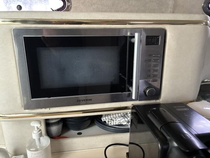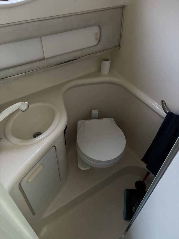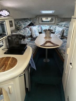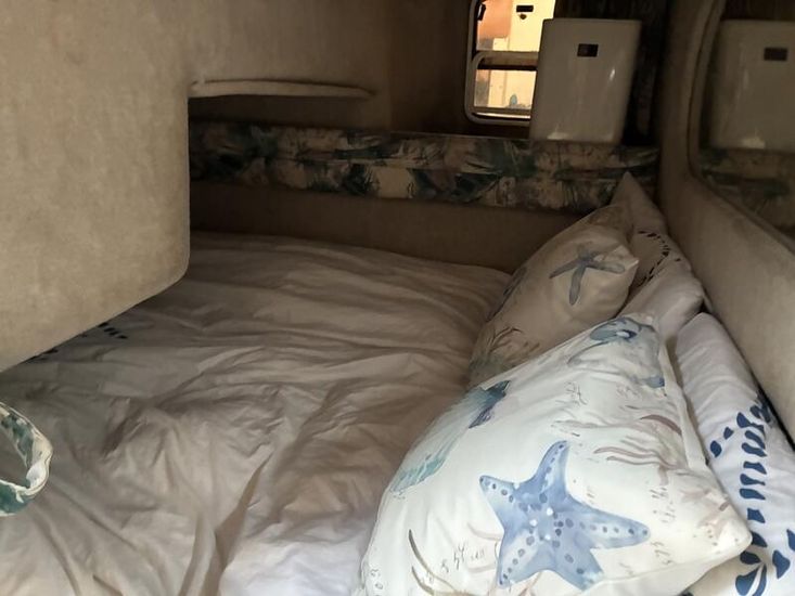 The total boat length is around 29 feet and sleeps 4 persons very comfortably in 2 separate cabins, with ample interior room, a fully separate wet room with vacuum flush toilet and shower.