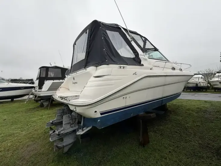 The 1995 Sea Ray 290 Sundancer is a remarkable powerboat that combines the elegance of design with the functionality required for family cruising. This 29-foot 2-inch express cruiser, with an overall length of approximately 32 feet 1 inch, features a spacious 9-foot beam, making it an ideal choice for both leisurely weekend getaways and exciting nautical adventures. Powered by twin Mercruiser sterndrive engines, the 290 Sundancer offers the perfect blend of performance and comfort, ensuring a smooth and enjoyable ride on the water.