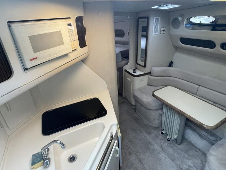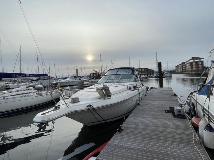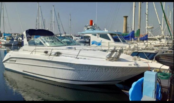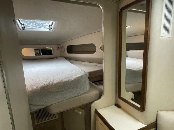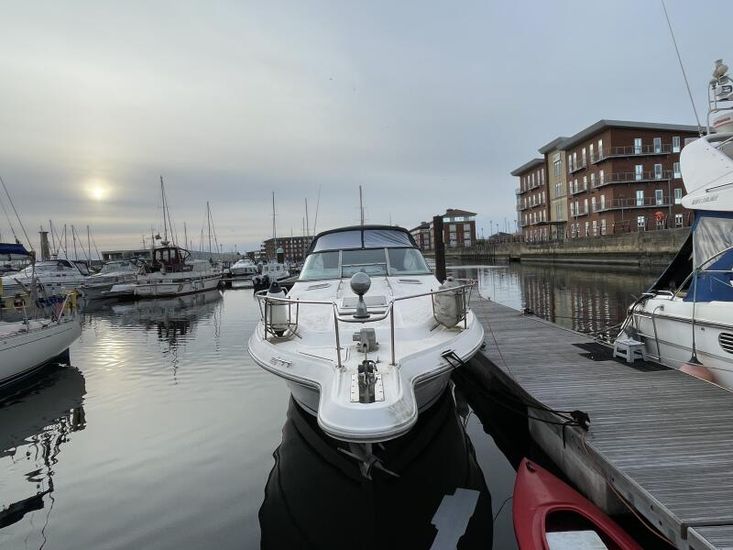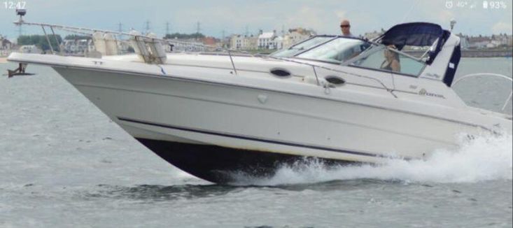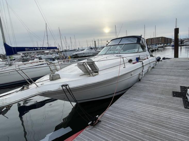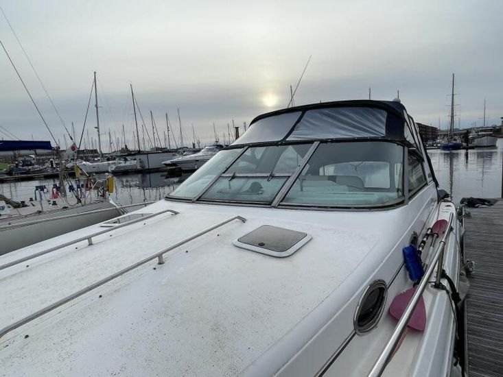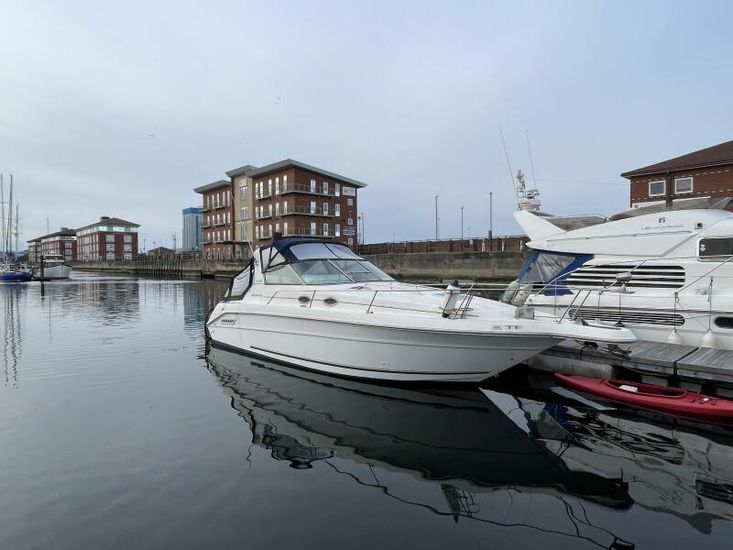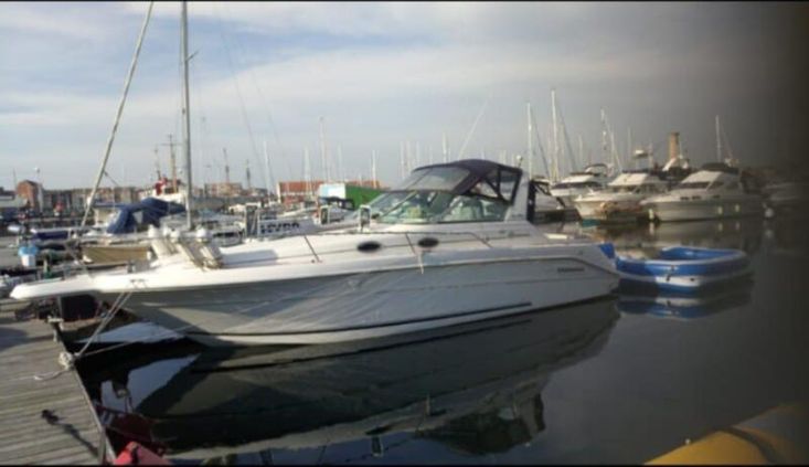 Sea Ray 300 Sundancer Sports Cruiser with twin inboard petrol 5.7V8 engines with V-drive propulsion. Built in 1996, these were very popular craft due to the thoughtful and and useable space inside and outside. Equally important as the 300 was designed with extended stays in mind.