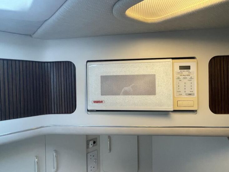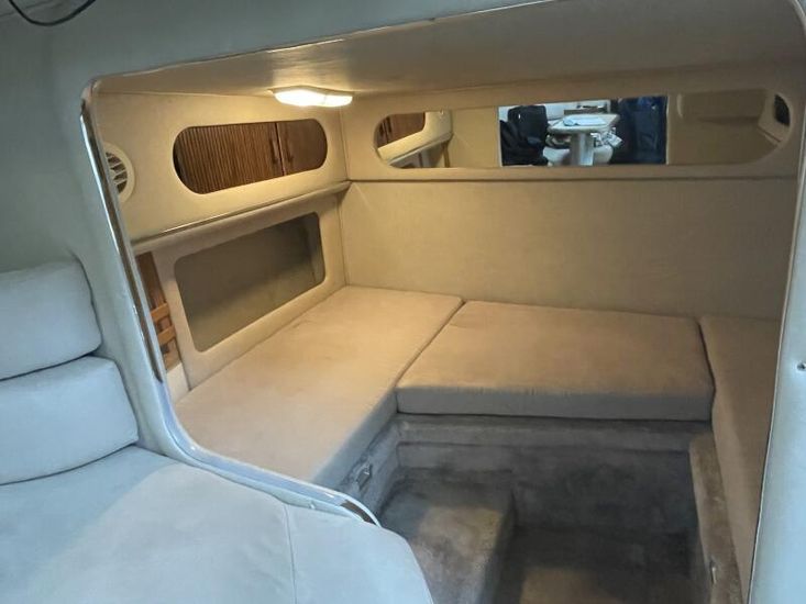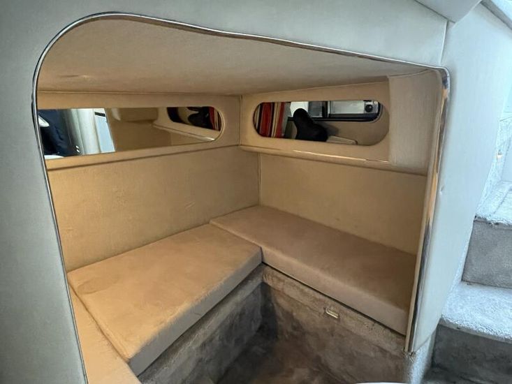 Rear cockpit has been re-upholstered and the helm bench is awaiting refurbishment. Below decks is finished in Alcantara in great condition. Interior comforts include reverse cycle Cruisair airconditioning that also provides heating.