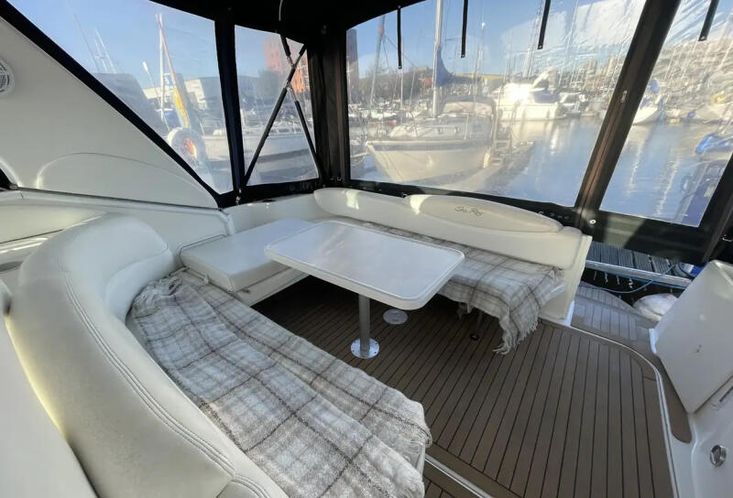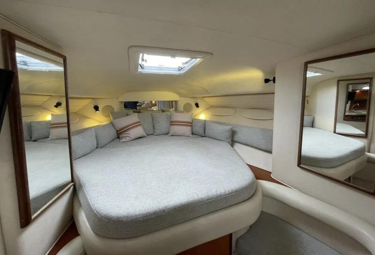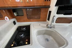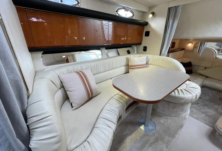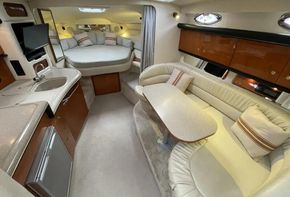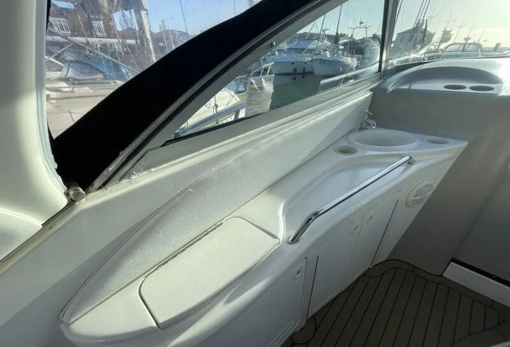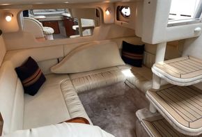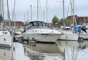 Tiki is a very clean tidy example of the popular Sea Ray Sundance 340. She has been kept in good condition and is ready to get on and go. Tiki enjoys a sumptuous cockpit with comfortable seating and plenty of room for relaxing. Her spacious, sociable internal cabin is light, bright and benefits from an open plan configuration. Tiki benefits from the extended diving platform that is a factory extra giving this boat extra footage over the standard model.